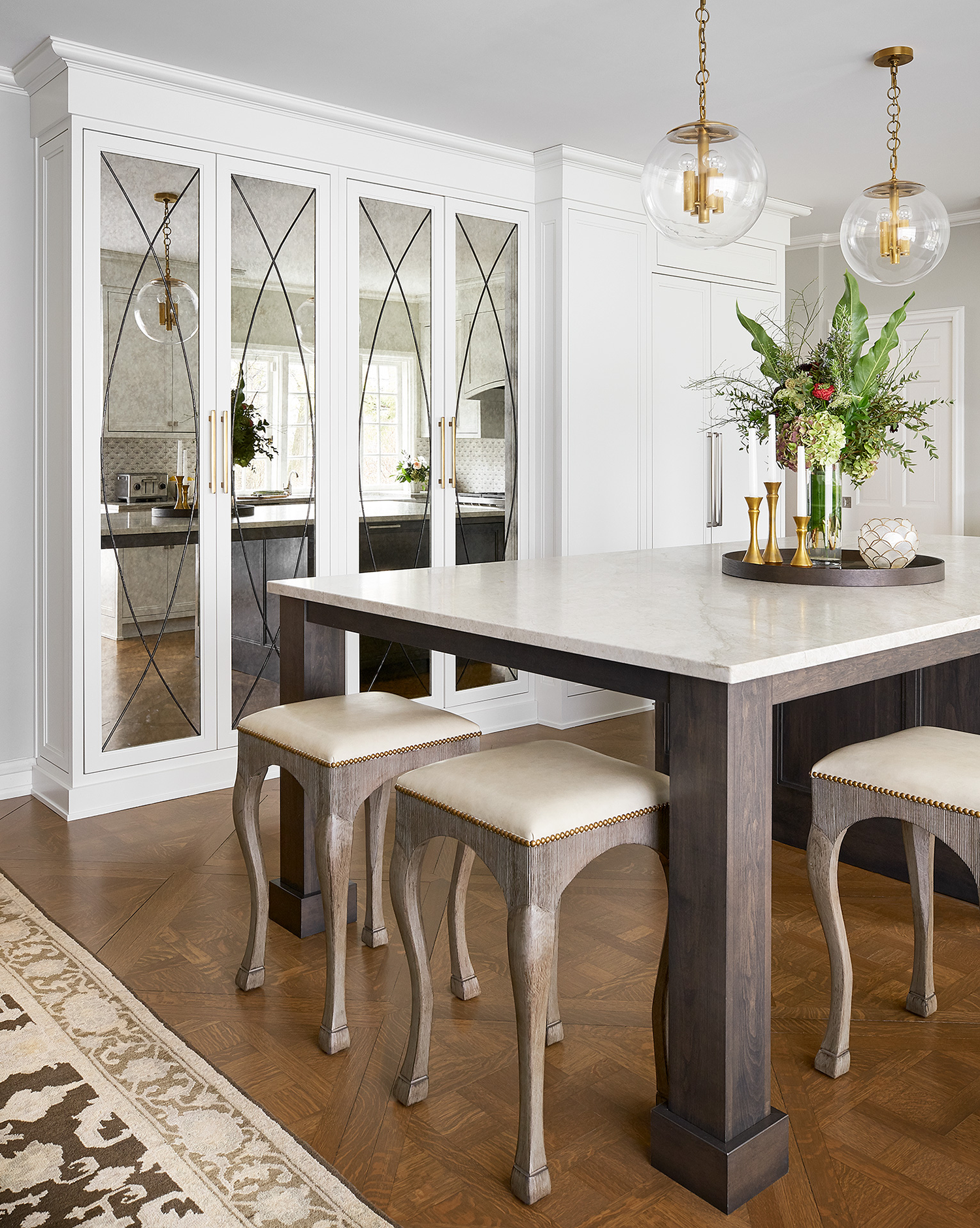 Kitchen islands are one of the most sought after design trends in the home. At one time, islands were being squeezed into kitchens, but today kitchen islands are focal points and main hubs within a kitchen. An island can provide you with additional prep space, storage and they can even be used as a dining area. More and more these days, dinner islands are being requested, which are islands with traditional prep space and a little extra space for friends and family to dine or spend time together. I love seeing the evolution of this kitchen design element!